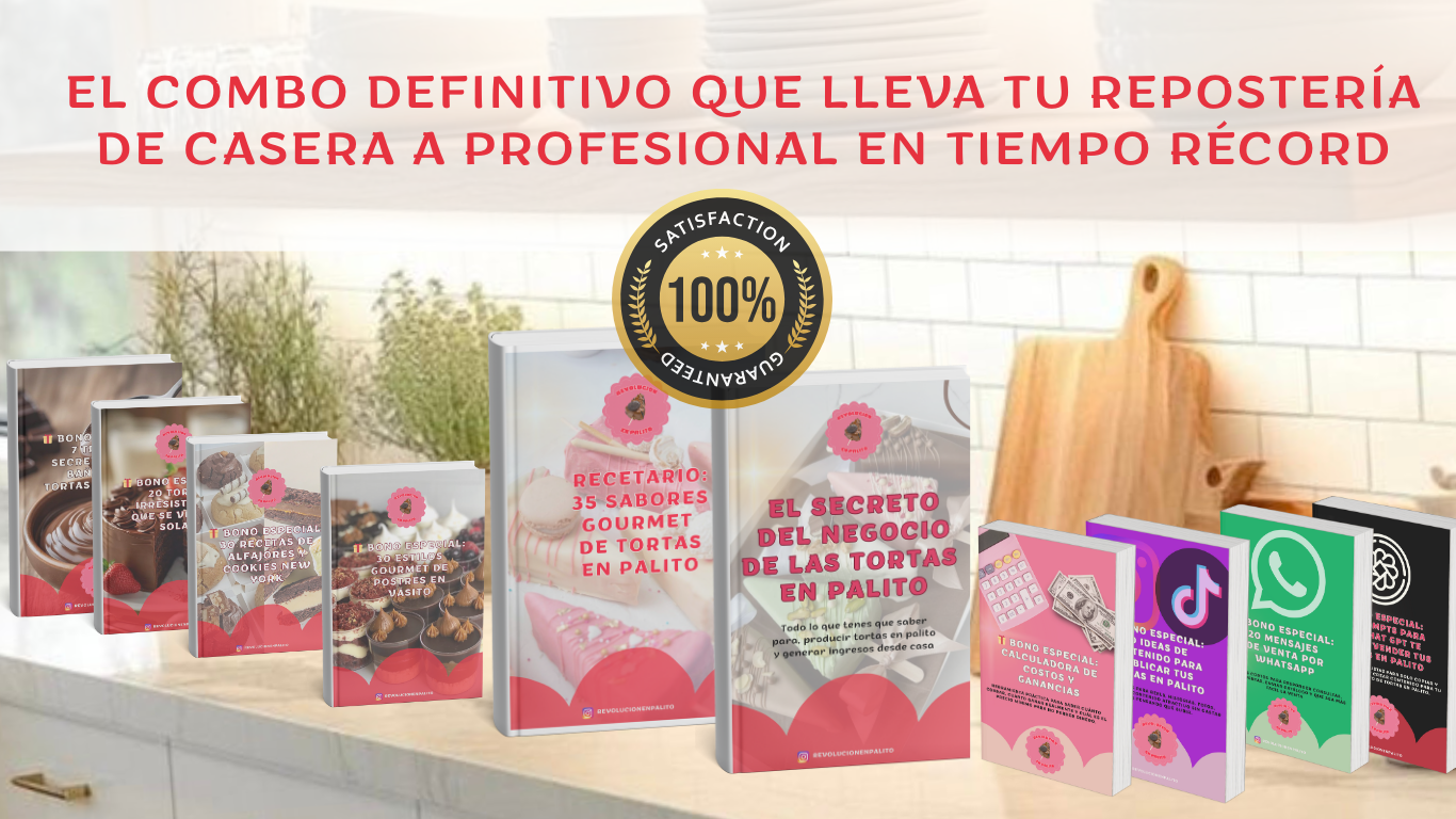 Es pack digital súper completo que reúne todas las recetas, técnicas y herramientas que necesitás para crear y vender tortas en palito como una profesional desde cero